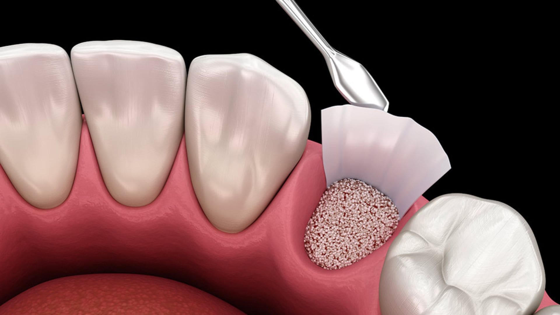 Le greffon est recouvert d’une membrane en collagène qui empêche la gencive d’envahir l’espace à reconstruire.